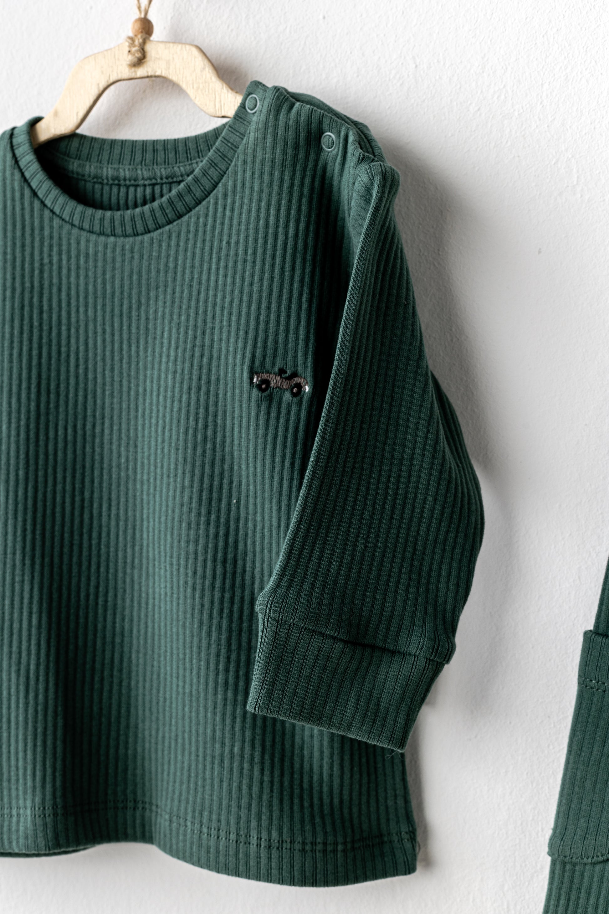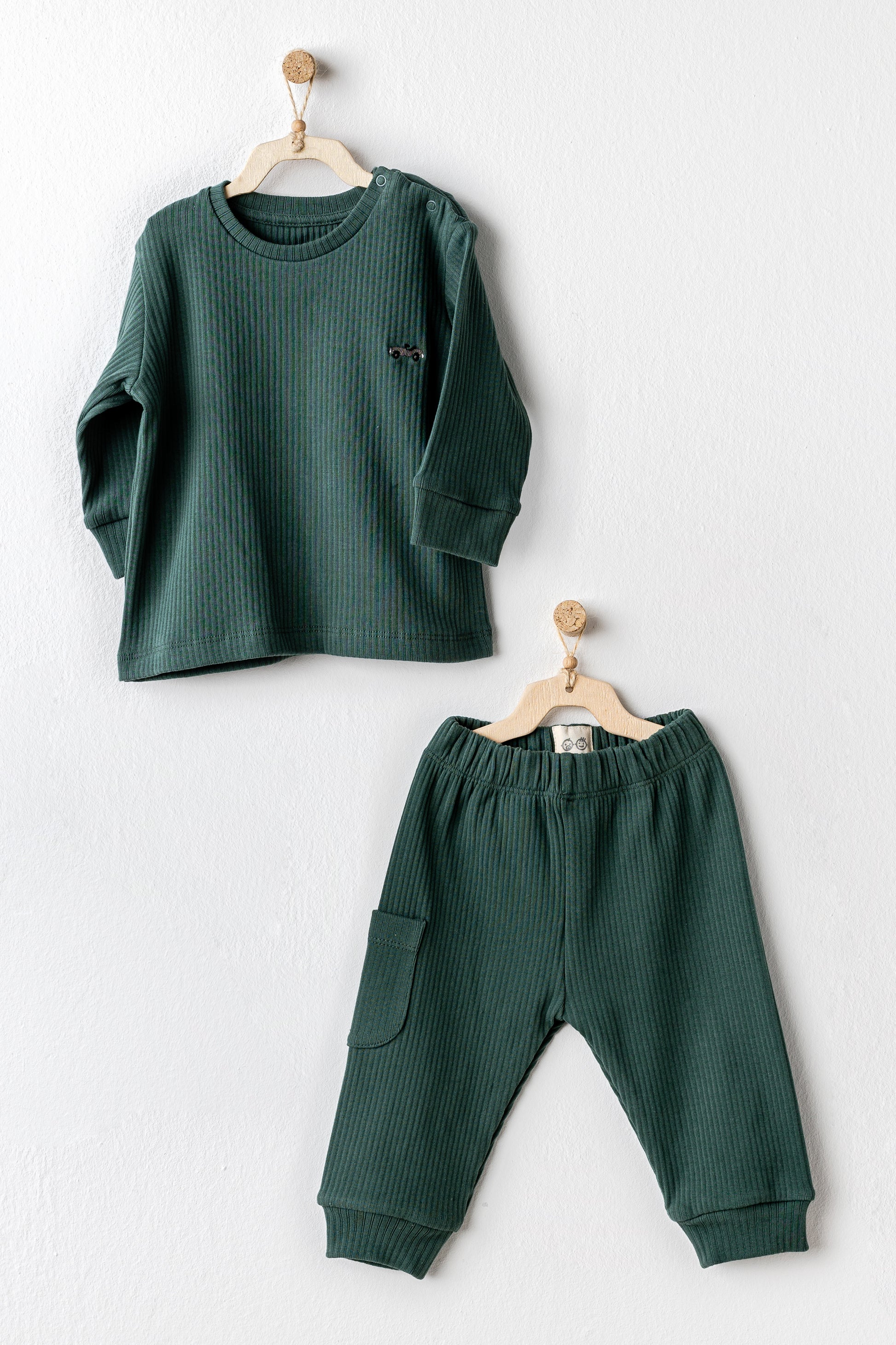 Set i rehatshëm 2 pjesësh për djem bebe, me bluzë me mëngë të gjata dhe pantallona me xhep anësor. Zgjedhja perfekte për ditët e përditshme dhe lojë të lirshme.