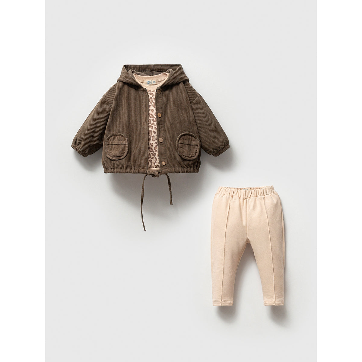 Ky set i ëmbël për vajza përfshin një jakne të ngrohtë, një bluzë të butë dhe pantallona komode, perfekte për ditët e ftohta dhe për të krijuar një look trendy dhe të rehatshëm çdo ditë.